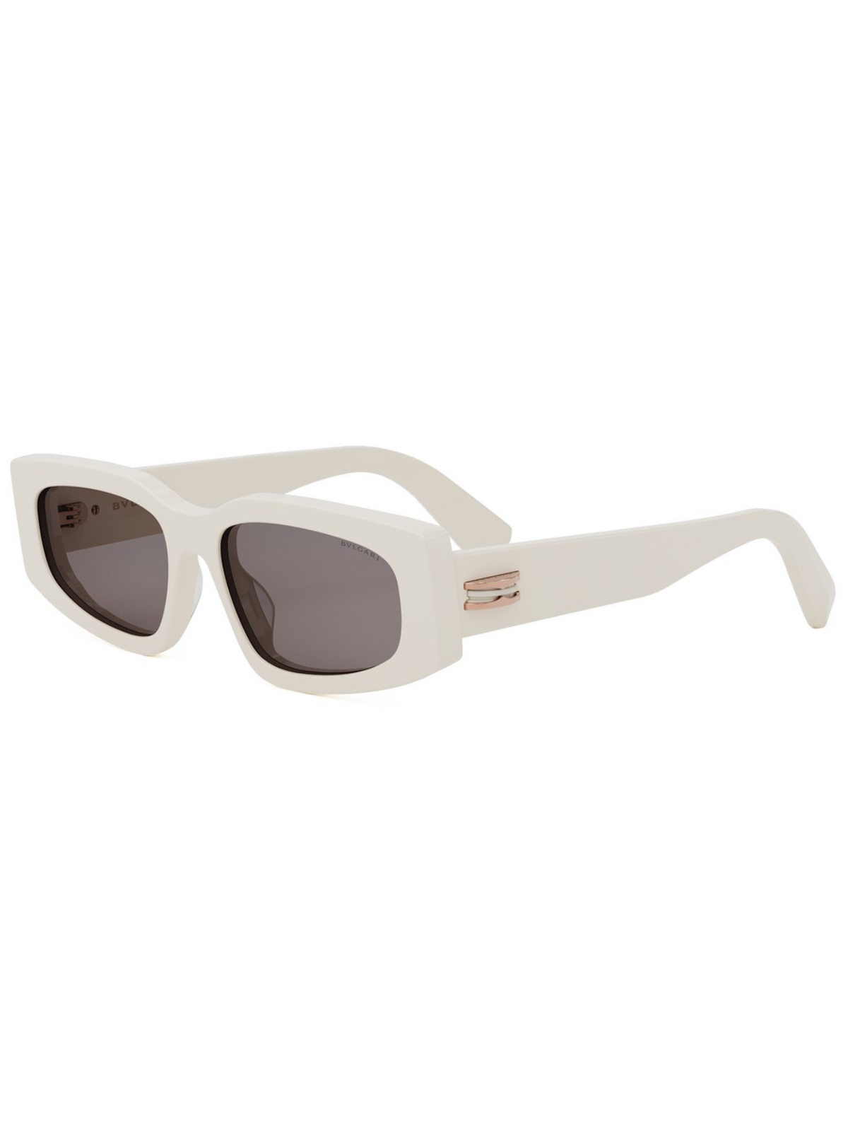 Gli Occhiali Bulgari BV40014I presentano una montatura rettangolare in acetato color avorio, arricchita dall’iconica spirale tubogas B.zero1 sulle aste, offrendo un tocco di distintiva eleganza.